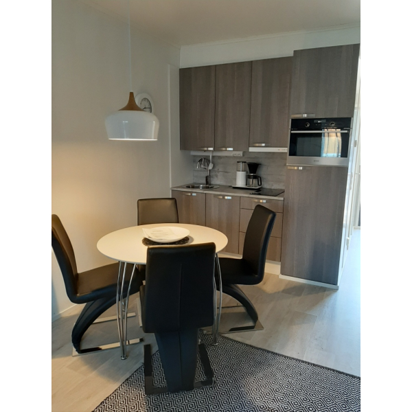 VARUSTELUETTELO: Astianpesukone, astiasto 4:hlölle, jääkaappi pakastinlokerolla, kahvinkeitin, vedenkeitin, leivänpaahdin, liesi-uuni, mikroaaltouuni, tv, pyykinpesukone vuodevaatteet 3:lle (täkit+tyynyt), terassikalusteet. Pienet koirat sallittuja asuntoon.